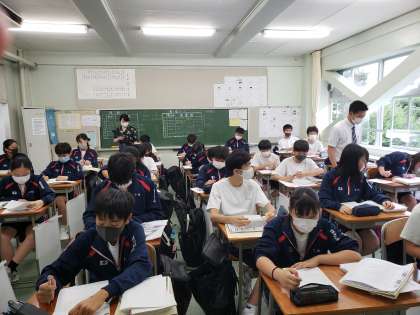 砧中では少人数指導に加えて、二人以上の教員が一つの授業を担当する、いわゆるティームティーチングも取り入れています。主に国語と英語で行っています。二人の教員が入ることで、よりきめ細やかに生徒たちの様子を見ていくことができます。必要に応じて学習の支援も行います。