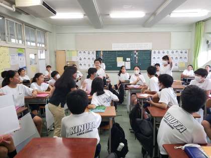 英語ではALTの先生とティームを組みます。実践的な英語での会話、上手くコミュニケーションがとれると生徒たちも嬉しそうでした。