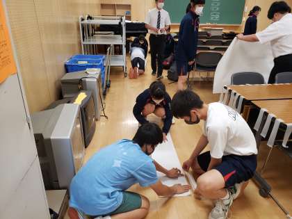 立候補者の受付も終わり、9月2日(水)から始まる選挙活動に向けて、候補者の襷づくりを行っています。襷に書く名前などは、夏休み中に各候補者が作成することになりますが、選挙の公平性を確保するために、様々な選挙ツールの規格などは統一します。