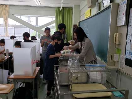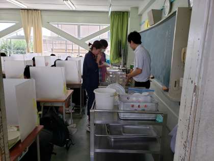 シャキシャキ野菜と小玉スイカも付いて、牛乳でカルシウムも補給して、栄養バランス抜群のラストを飾るメニューでした。明日からは自分自身で栄養バランスを考えながら(もちろん暴飲暴食は避けて)、夏バテ予防、免疫力アップを図ってくださいね。