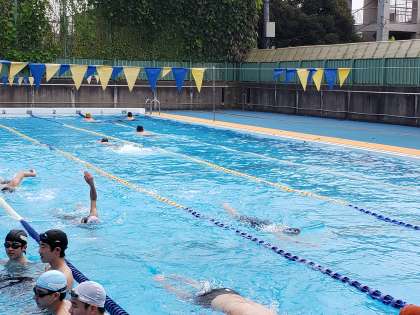 今年度、体育での水泳は実施できませんが、部活動としての水泳は認められています。午前中、前半はI組水泳部(希望者のみ)、後半は水泳部が活動しました。