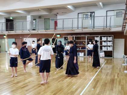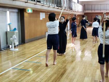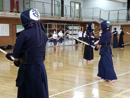 新入部員のお陰で大所帯となった剣道部。2年生が1年生を丁寧に指導している姿も見られました。