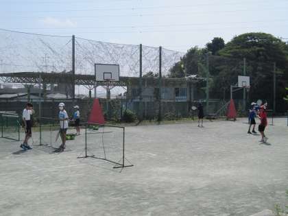 体調に気を付けながら練習を行いました。20分ごとに日陰で水分補給をし、ピロティ—にあるミスト扇風機にあたりました。