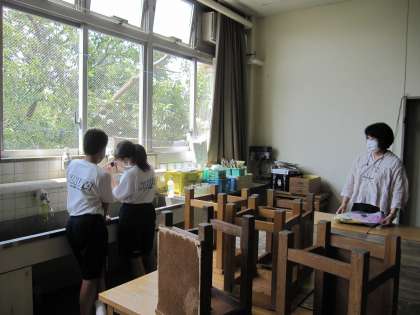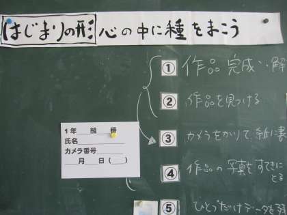 1年生が美術室で夏休みの課題の写真撮影をしていました。