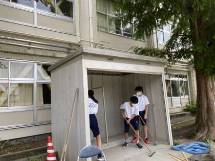 セミの鳴き声とともに夏の日差しが照りつける今日、1・2年生は大掃除を行なっています。