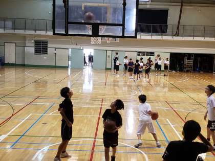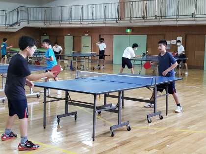 屋外と比べて、過ごしやすい環境です。それでも部員の熱気で、気温が上昇しているかもしれません。卓球部、剣道部、バスケットボール部の様子です。