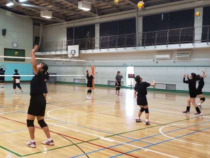 バレーボール部は喜多見中を招いての合同練習。人数が増えたことで活気溢れる雰囲気となっています。
