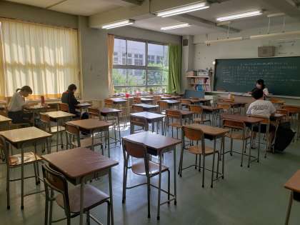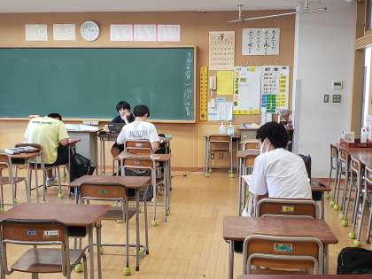 自学タイム最終日です。前半と比べて後半では参加生徒が少なくなりましたが、暑い中生徒たちは真剣に学習に取り組んでいました。