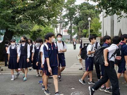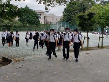 2学期初日が終わりました。早く下校するせいか、笑顔の生徒が多いようです。ポイントごとに教員が立って、下校状況を見守ります。友だちとの再会でテンションが上がり、つい道路一杯に広がったりして、通行する方へ迷惑をかけてしまうこともこれまでありました。気をつけて、そして気を配りながら下校してくださいね。