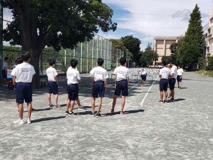 3年生体育。ハードル走を行っています。生徒に聞いてみるとタイミングとリズムが大切だそうです。やはり3年生になると走り方にも力強さを感じます。