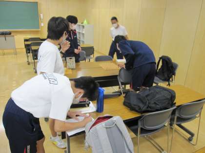 今日の囲碁・将棋部の活動も和気あいあいと行われました。部員が作ってきた将棋についての問題を学校支援コーディネーターの方も解いていましたが、難しかったようです。ある生徒は地域の方との対局で2連勝できたと喜んでいました。普段は昼休みに銀杏ホールで楽しんでいますが、月に1回の放課後の活動は格別のようです。(副校長)