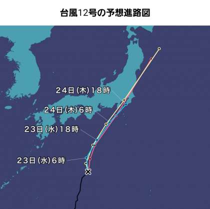 台風12号が太平洋上を北上しています。現時点での予報では24日(木)の登校時および下校時において、強い風雨が予想されます。明日23日(水)下校時までに、翌朝の対応について一定の方針を定め、お知らせいたします。