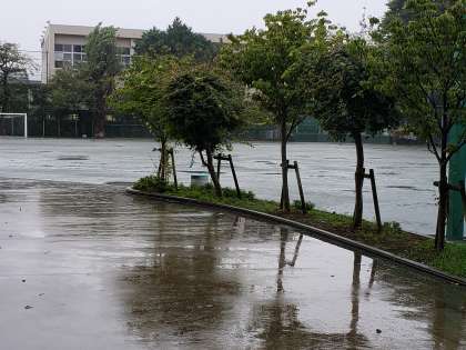 学校敷地内、学校周辺の安全確認が終わりました。今回の台風での影響はありませんでした。本日予定どおりの教育活動となります。