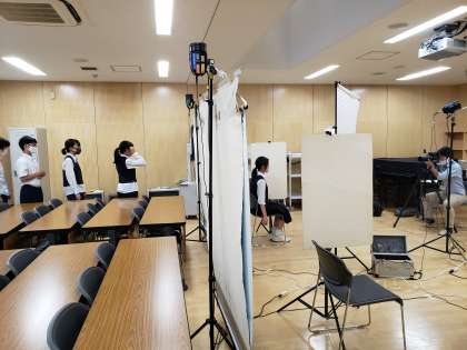 3年生のアルバム撮影が行われています。ジャージ登校の生徒が多いので、写真に写る上だけ標準服です。「緊張する〜」という生徒も。自然体で、あくまでも自然体でね。保健室前に掲示してあったメッセージも参考にしてくださいね。