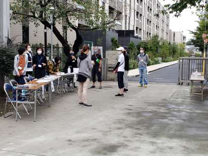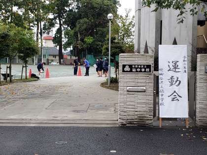 ほぼ準備が整いました。現在生徒たちは教室で出席確認を行っています。まもなく校庭に集合します。PTAサポーターの皆様、朝早くからの準備、ありがとうございます。