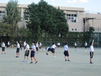 今日からの体育の授業は全学年、女子はバレーボール、男子はソフトボールです。午前中の3年生のバレーボールではパスの練習をしていました。午後の1年生男子の授業では、ソフトボールが大きくて投げにくそうでした。昨日の運動会の疲れも見せず元気にボールを追いかけていました。これからの学習で、少しずつ上達していくことでしょう。(副校長)