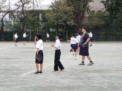 まずはキャッチボールの基礎をしっかりと。ゴロを捕るなど地道な練習を繰り返しています。早くバットで打ちたいところですね。
