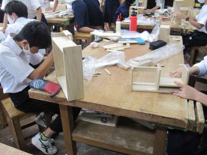 木工室からトントンと音が聞こえてきます。2年生がデザインスタンドを製作中です。オリジナルデザインのスタンドには何を飾るのでしょうか。そんなこともイメージしながら作業を進めています。(副校長)