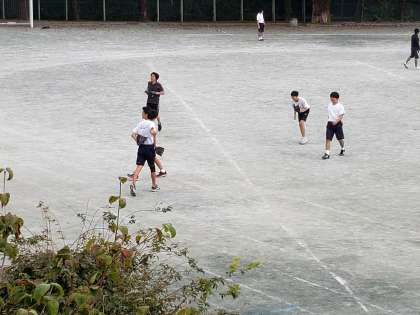 ふと見ると、教員も加わっての熱戦中でした。まだ運動会の興奮が冷めやらないようです。一番盛り上がっているのも教員のようでした。