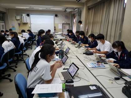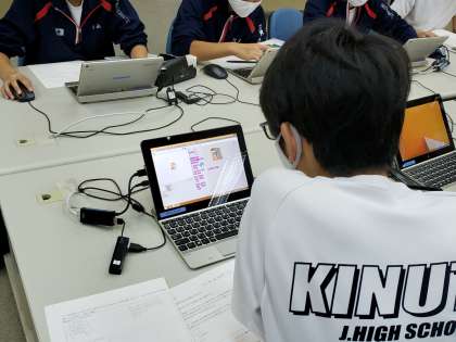 プログラミングの制作を通して、動作の確認を行っています。今回はクイズを出すプログラムを組んでいます。小学校でもプログラミング学習が始まり、使いやすい学習ソフトも利用できるようになりました。生徒たちの試行錯誤の様子が伝わってきます。