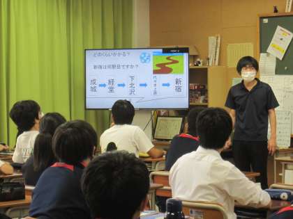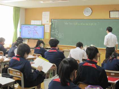 授業はテンポよく進み、習った英語を駆使して会話をしていました。(副校長)