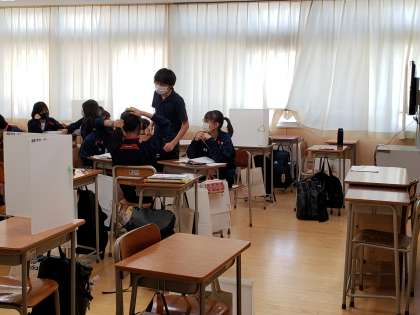 昼休みには校内至るところで生徒と先生の和やかな会話風景が見られます。授業時間とはまた一味違ったリラックスした雰囲気で、勉強のこと、趣味のこと、部活動のことなど話題にしています。こんな場面がもっともっと増えるといいですね。