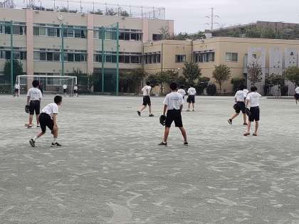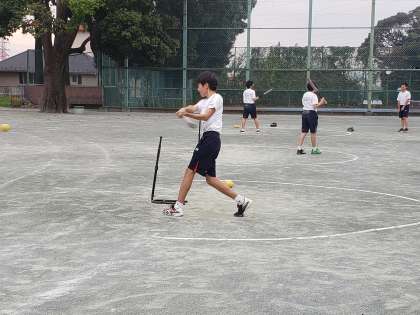 バッティング練習が始まり、生徒たちは楽しそうです。カメラを向けられると緊張します、と言いながら見事なバッティング。守備の生徒たちもナイスキャッチ!です。