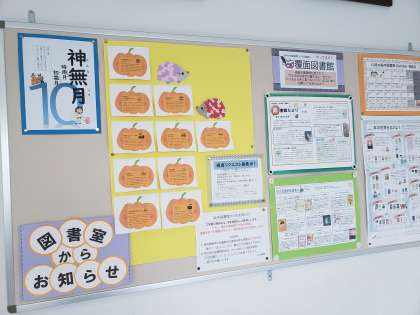 図書室コーナーも10月版に模様替え。先日お知らせした『覆面図書館』の紹介もあります。人生を豊かにする本との奇跡の出会いを求めて、ぜひチャレンジしてみてくださいね。中間考査前でゆっくりと読書できないかもしれませんが、一段落したら「読書の秋」を満喫してください。