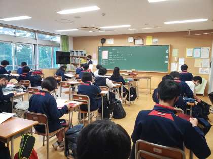 雨の中、生徒たちが登校してきました。今日から中間考査が始まります。学活の時間には改めて試験に臨む姿勢などを確認していました。普段通りの力が発揮できますように。