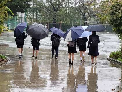 まずは中間考査初日、生徒のみなさんお疲れ様でした。明日も試験はありますが、1日終えたことで少しだけ余裕も出てきたようです。下校時には笑顔も多く見られました。雨脚が強くなっています。風邪などひかないよう暖かくして帰宅してください。