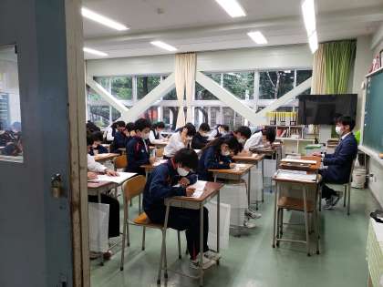 生徒たちも無事に登校して、中間考査が始まりました。今日のスタートは数学です。問題に真剣に向き合っている姿、心の中で「頑張って」と声をかけていました。