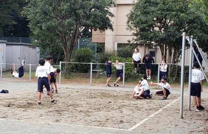 昼休みの校庭。最近、生徒たちの遊びが多様化してきたようです。お馴染みのサッカー、バスケ、ラグビーに加え、ドッジボールやバレーボール、そして鉄棒や砂場での相撲など新たな遊びも増えてきました。限られたスペースを上手くシェアしながら、独自ルールを採用して楽しんでいます。こういった遊びの中での創意工夫、とても大切な事だと考えています。