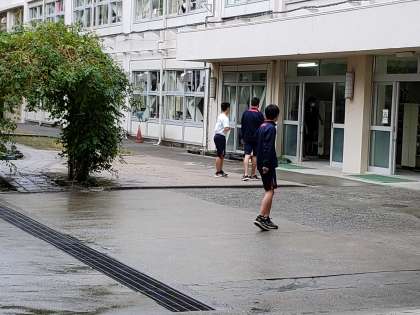 4校時の後半から降り始めた雨。昼休みに校庭での遊びを楽しみにしていた生徒たちは、まさに水を差されてしまいました。「校庭へ出るのは駄目でしょうか?」相談に来る生徒もいましたが、今日に関しては「ごめんなさい」でした。