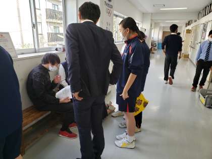 先生が生徒たちの質問に答えていました。あれっ?英語の先生が数学を教えている?それも3年生の数学を。かつての中学時代の解き方を思い出しながら、一生懸命教えていました。生徒たちからは矢継ぎ早の質問が…。「これでいいんだよ。昔はこういう解き方だったんだ!」「えぇ〜!」。確かに専門教科以外を教えるのは難しいですよね。それも中学3年生の問題を。