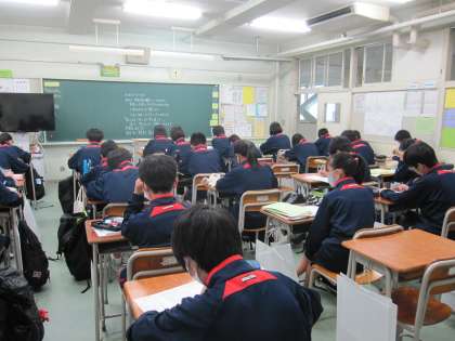 2年生は朝学活で学校関係者評価アンケートを行いました。皆さんからいただいたアンケートは来年の学校運営に生かしていきます。