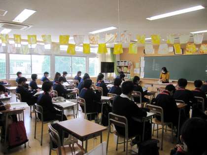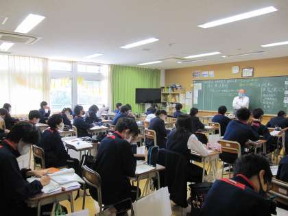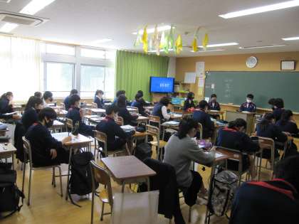 国語では、前の關で討論している様子を生徒たちは真剣に聞いています。