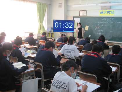 1年生の教員一人一人が持ち味を生かし工夫を凝らして授業を行っています。(副校長)