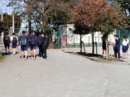 そんな中で3年生が下校していました。校庭で遊びたそうな生徒の姿も。昨年度の3年生も同じでしたよ。気をつけて帰宅してくださいね。