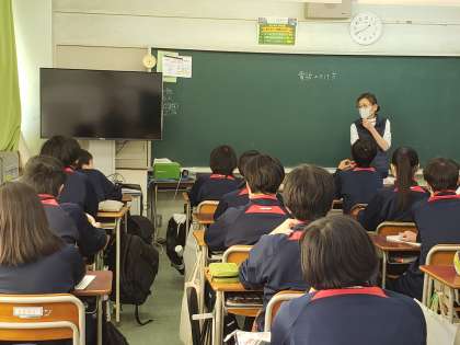 2年生の教科「日本語」。電話のかけ方について。メールやSNSでやり取りすることの多い現代。それでも電話で依頼したり、相談したりする機会はあります。実は今年度中止となった2年生の職場体験で、生徒たちは各事業所への電話連絡を実際に体験する予定でした。いざ電話するとなると緊張してうまく言葉が出てこないものです。今日の授業ではマナーも含めて、電話のかけ方を学びます。