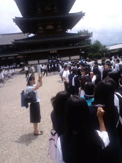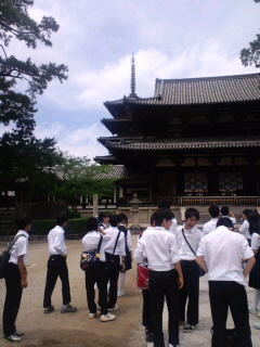 金堂の釈迦三尊像 大宝蔵院では百済観音像と玉虫厨子などを見学しました。