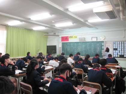 下の写真 国語の漢文で「矛盾」について意味を確認していました。(副校長)
