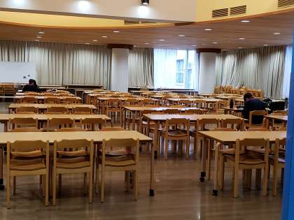 ランチルームは進路相談の待機場所となっていますが、自習室として使っている生徒もいました。自宅よりも集中しやすいそうです。18時までならどうぞご利用ください。