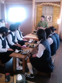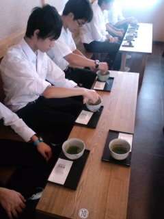 よく説明を聞いて、集中して抹茶作り体験をしています。自分の目と舌で本物を知ることが大切なことを学びました。習得のコツは感謝の心だそうです。