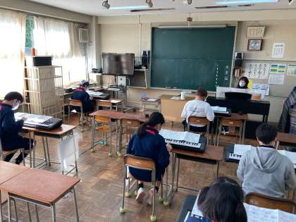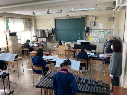 3学期に行う予定の合奏発表にむけて、水金の音楽の時間にI組生徒頑張って取り組んでいます。