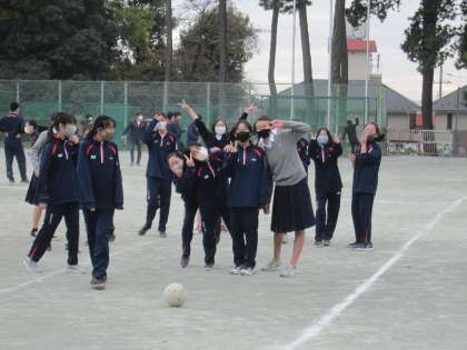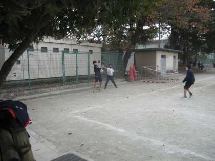 カメラを向けたらピースをしてくれた子たちはバレーボール。