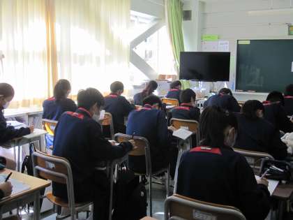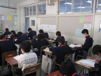 2年生の教室を見て回りました。残り時間に自習している生徒たちの気迫が伝わってきました。毎日、学習計画表に基づいて学習している皆さんにとって、計画の遅れがあった時には学校での自習時間は大切に使いたいですね。(副校長)