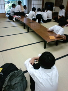 修学旅行最終日になりました。今日の天気は曇りです。朝食後はお世話になった部屋の片付けを済ませて、出発準備です。今日はタクシーでの班長行動です。