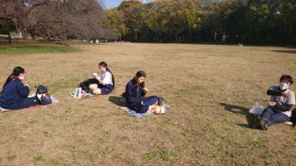 広々とした芝生の上に、レジャーシートをしいてピクニック気分です。
