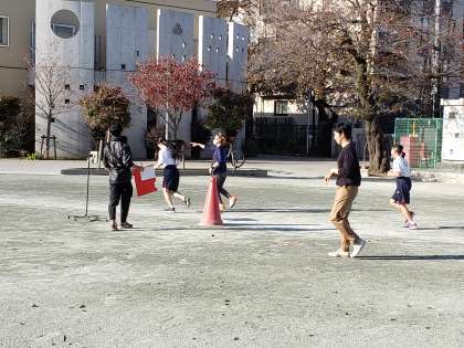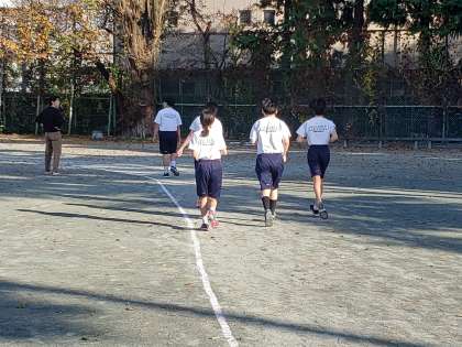 I組が参加する5校合同マラソン大会。いよいよ来週27日の開催が近づいてきました。毎年参加している砧中生。例年この時季の練習は寒さの中で行っていますが、今日はまさかのポカポカ陽気、気温との戦いとなりました。また風が強いため、向かい風には苦労していました。それでも走り終わった生徒が、まだ走っている生徒を応援するなど、砧中生としての一体感が伝わってきます。伴走の先生たちも汗びっしょりでした。