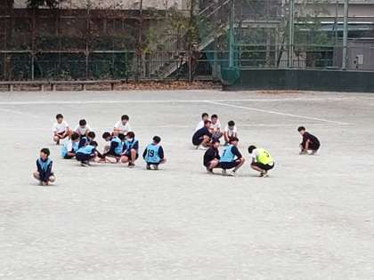 本日の避難訓練、6校時に緊急放送が流れました。授業中それぞれの場所で避難の態勢をとり、次の指示を待ちます。校庭での3年生の動きに注目してみました。体育のサッカーで盛り上がっている最中での放送でしたが、教師の指示がなくてもすぐにプレーを中断し、その場に座って待機できました。さすが3年生です。昼休みなどでは緊急放送が流れても、遊びを継続しがちですが、3年生の迅速な切り替え、1・2年生のお手本となりますね。